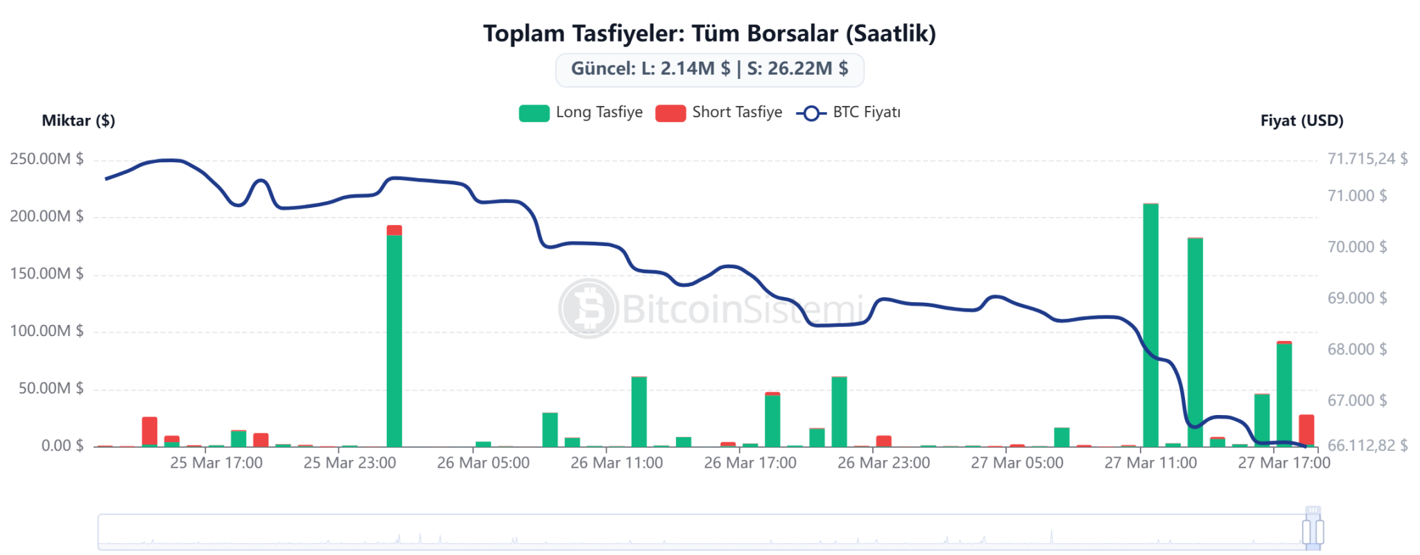 Selling pressure has spread widely in the crypto market. Bitcoin fell to its lowest level in two weeks, dropping to $65,928 and losing approximately 4% in the last 24 hours. Ethereum similarly declined by 3.8%, falling to $1,984.