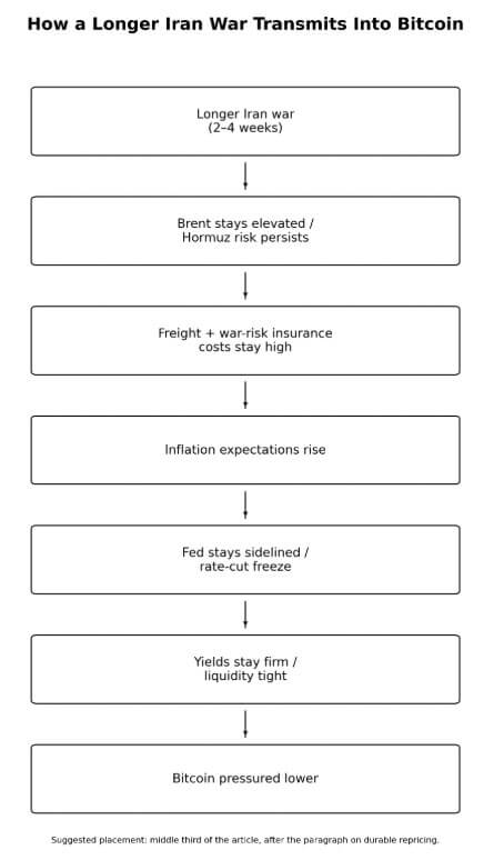 A 2024 study in Finance Research Letters found that Bitcoin returns and volatility tend to respond to political uncertainty shocks, particularly during periods of financial stress. Bitcoin trades lower now because a longer war keeps the oil shock alive, which keeps liquidity tight.