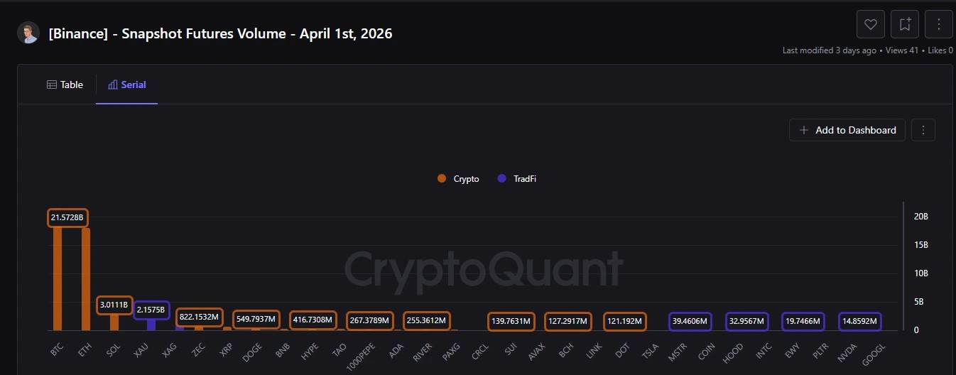 Gold ($2.15B) and Silver ($1.98B) futures on Binance have surged to rank fourth and fifth, respectively, in terms of trading volume, surpassed only by Bitcoin ($21.5B), Ethereum ($18.1B), and Solana ($3.0B). Cumulative trading for gold and silver contracts surpassed $130 billion by early March 2026. The milestone achievement is notable, given that the exchange launched metal perpetual contracts in January this year.