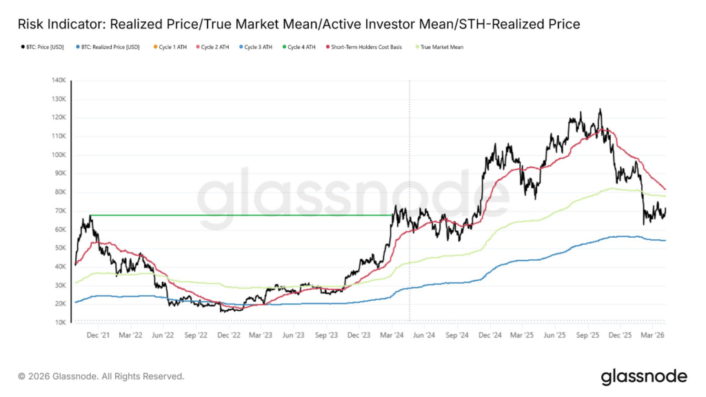 A potential Bitcoin price recovery toward its True Market Mean of approximately $78,000, which represents the average acquisition cost for actively traded coins, would first face selling pressure from short-term holders still underwater, whose aggregate breakeven is higher at around $81,600. As such, both $78,000 and $81,600 represent a distinct resistance zone, per Glassnode analysts.