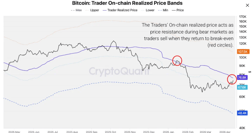 The analyst at CryptoQuant concludes that “This relatively subdued reading suggests that profit-taking is still in its early stages. Bitcoin holders who accumulated between $65,000 and $76,000 are now in profit, creating a growing pool of unrealized gains. In bear market rallies, realized profit spikes above $1 billion have historically coincided with, or slightly preceded, local price tops. If Bitcoin sustains above $76,000 or pushes higher toward the $76,800 Traders’ Realized price, daily realized profits could accelerate meaningfully toward and above the $1 billion mark, adding further selling pressure and increasing the probability of a rally stall or reversal.”