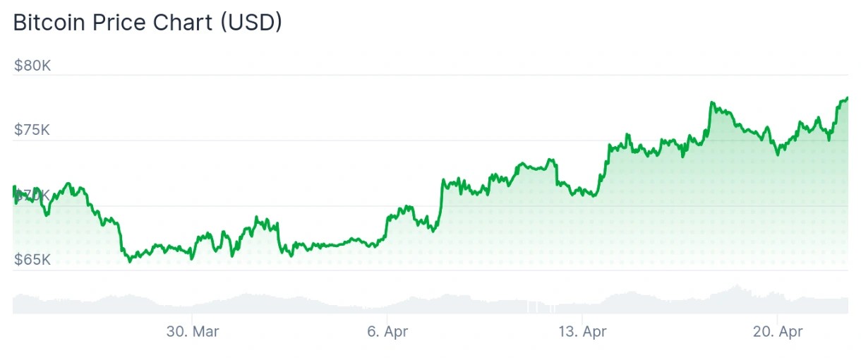 Meanwhile, at the time of publication on April 22, $BTC was changing hands at the price of $78,229.18, which represents an increase of 3% in the last 24 hours, a 5.4% gain across the past week, and an accumulated advance of 14.2% over the month, according to the most recent chart information.
