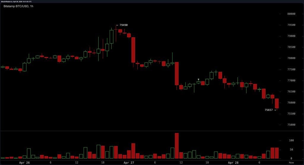 - Bitcoin fell from a weekly high of $79,490 to below $76,000 on April 28, as traders responded to geopolitical uncertainty and profit-taking.