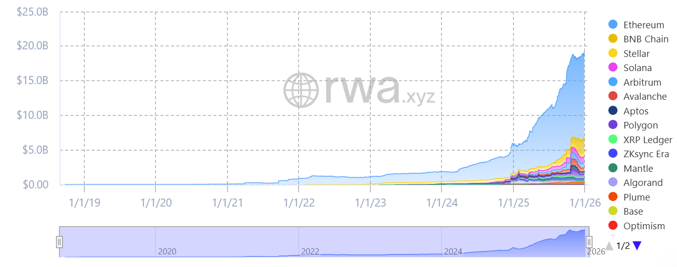 Ethereum remains the dominant network for RWA tokenization, capturing the largest share of on-chain RWA market capitalization.