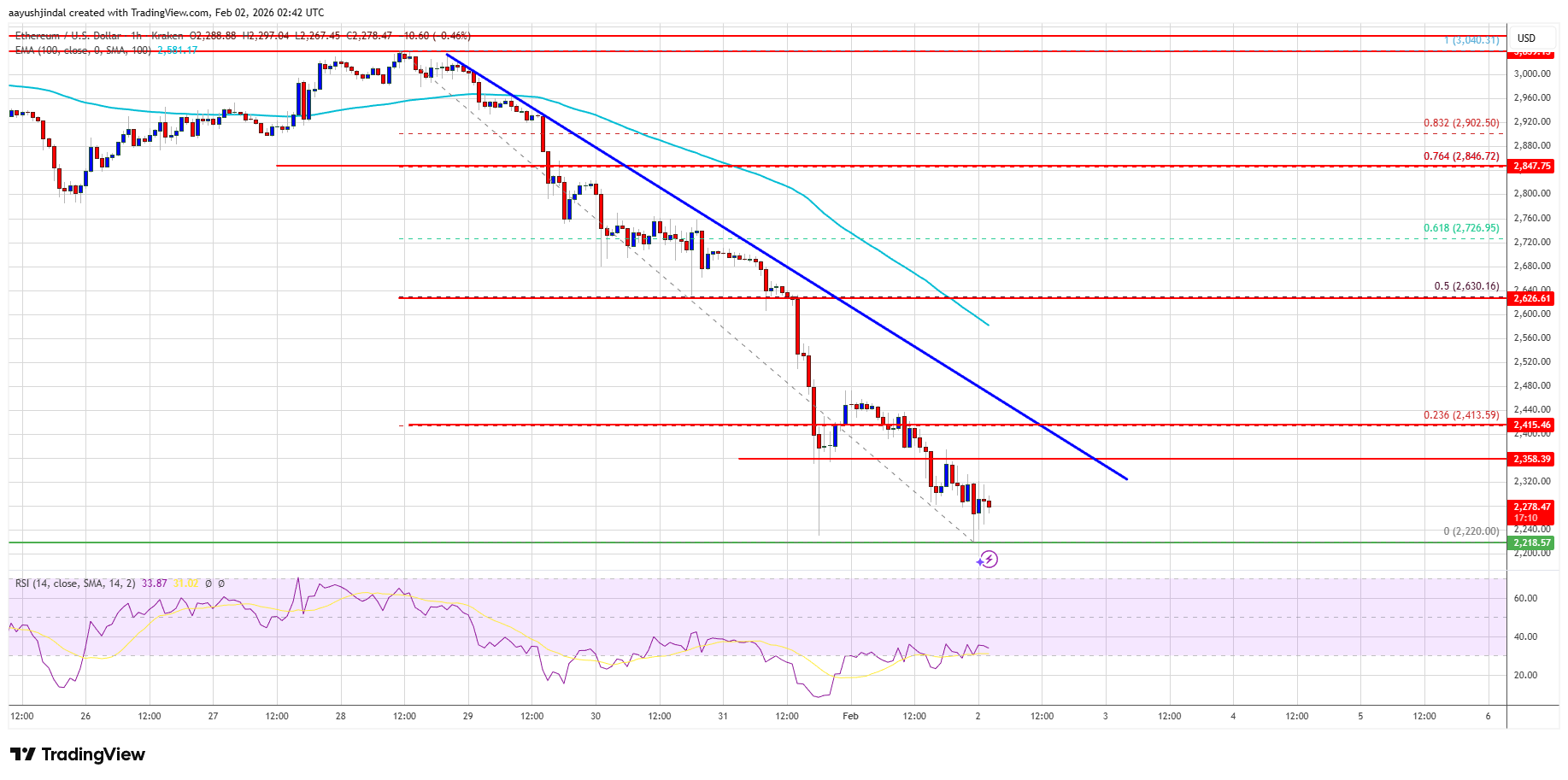 Ethereum price started a major decline after it failed to clear $2,500. $ETH is down 20% and is now struggling to stay above the $2,200 support.