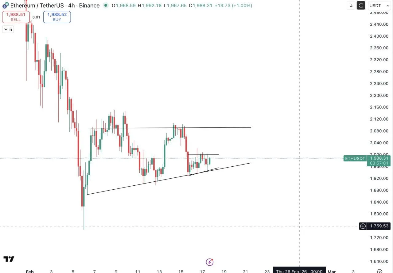 Market watcher Daan Crypto Trades said $ETH stayed “within this $1.8K–$2.1K range,” with no clear short term breakout while price “hover[ed] around this $2K region,” according to a post on X.