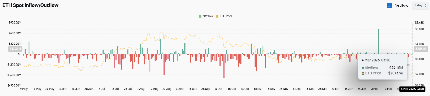 Additionally, flows stabilized toward November and December as prices consolidated. Early 2026 introduced stronger inflows, including a notable spike during early February.