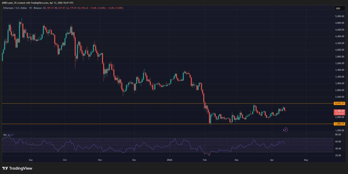 This tightening supply structure now begins to reflect in price behavior, as Ethereum compresses within a narrow range.