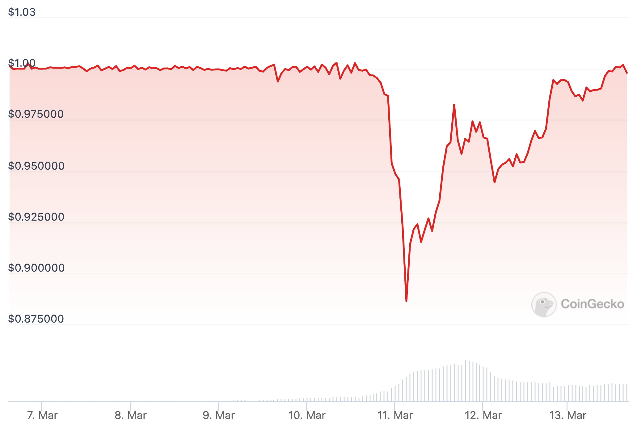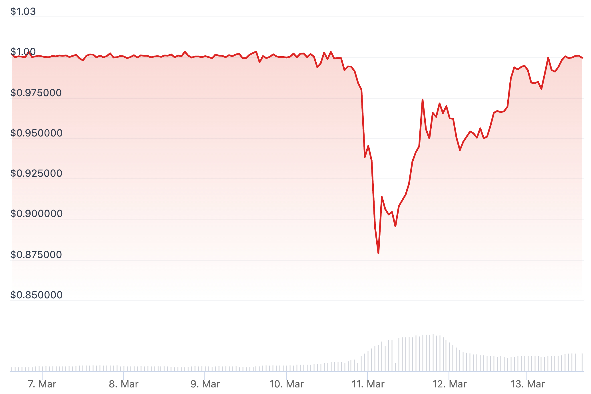 As of Monday morning, USDC had regained its peg after Circle promised that all outstanding USDC tokens could still be redeemed for $1, even if the company would need to finance it with external capital.
