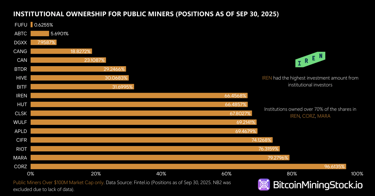 Institutions increased positions in Bitcoin miners during the first 9 months of 2025, with $IREN, $APLD, $CIFR, and $RIOT leading gains in holder numbers and capital flows.