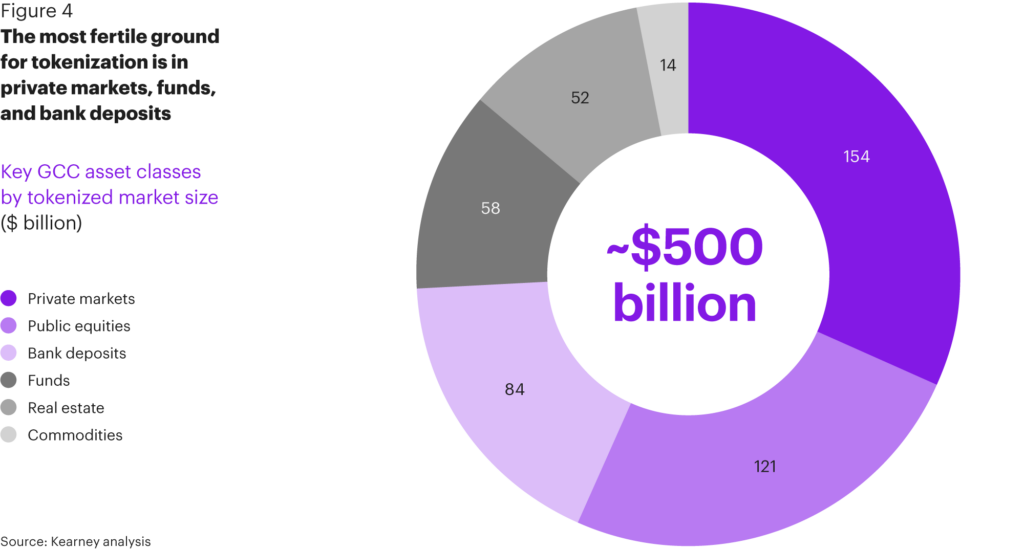Kearney, a global management consulting firm, in its recent report, confirms that the projected growth for tokenization uptake in the GCC (Gulf Cooperation Council) countries is close to $500 billion worth of assets. The fertile sectors for tokenization are private markets, funds, and bank deposits, while the primary catalysts are financial institutions, asset managers, and sovereign wealth funds.