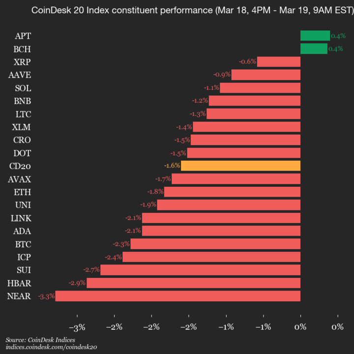 Leaders: APT (+0.4%) and BCH (+0.4%).