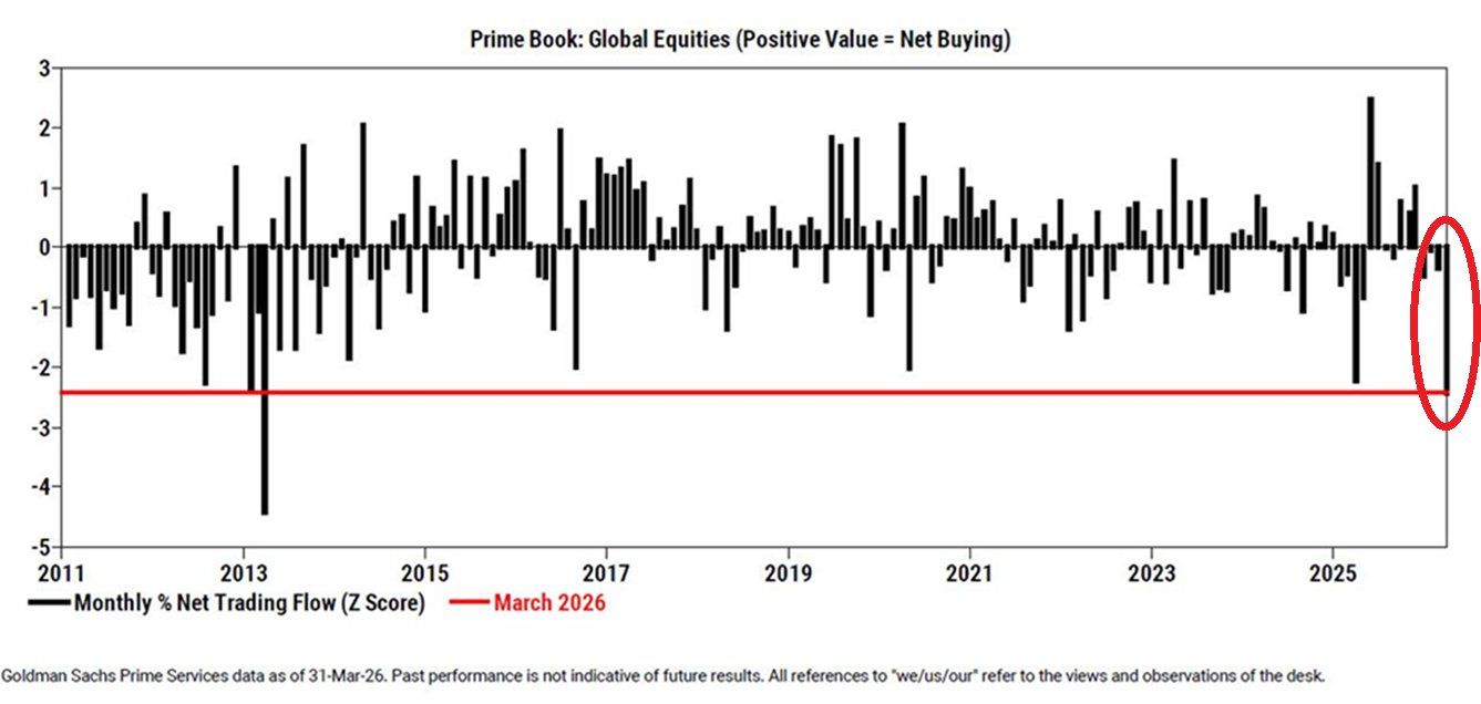 According to Goldman Sachs data, the funds shorted global equities at the most aggressive pace in 13 years last month.