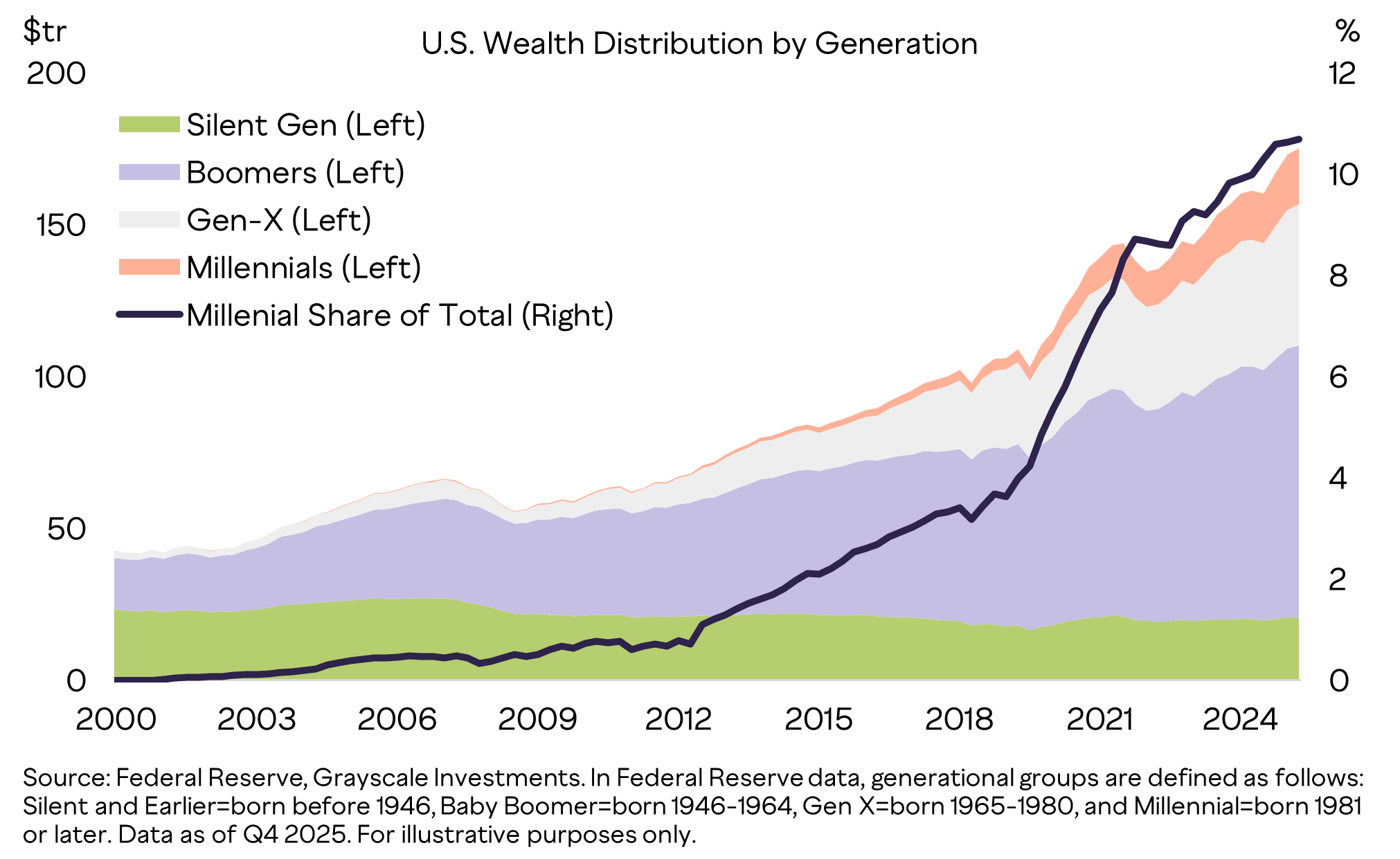 The Grayscale report points out that Baby Boomers are the richest generation in U.S. history, holding close to $90 trillion in wealth at the end of last year, based on Federal Reserve data.