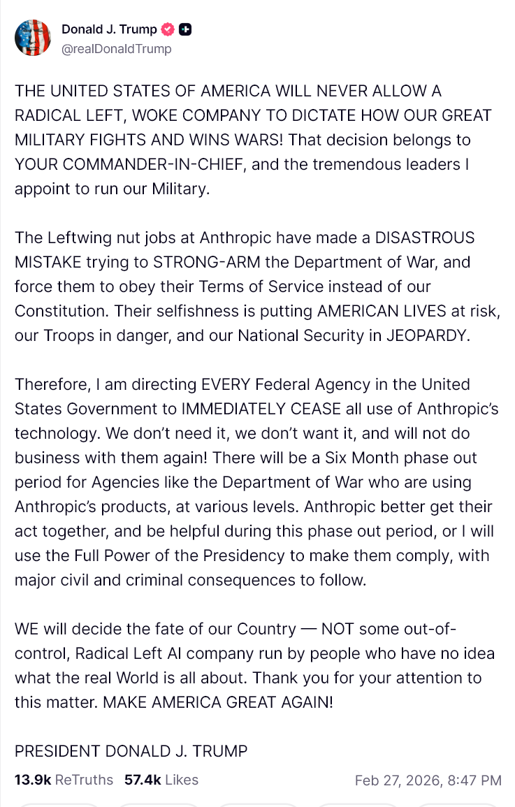 The decision immediately affected contractors that integrate commercial AI models into military software and analytics systems.