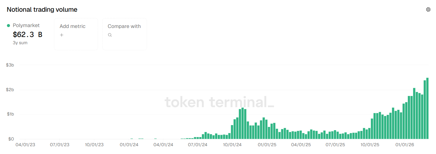 Notional trading volume on Polymarket and Kalshi rose to new all-time highs during the week ending Monday, March 9, to $2.49 billion and $2.85 billion, respectively, according to Token Terminal data. The growing activity has pushed the total notional volume across all prediction markets to $145 billion through 2.8 million unique users, data from Dune shows.