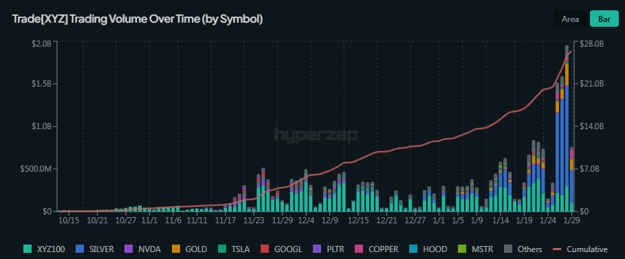 The latest expansion in HIP-3 liquidity was tied to the launch of silver trading pairs, reaching record influence in the past day.