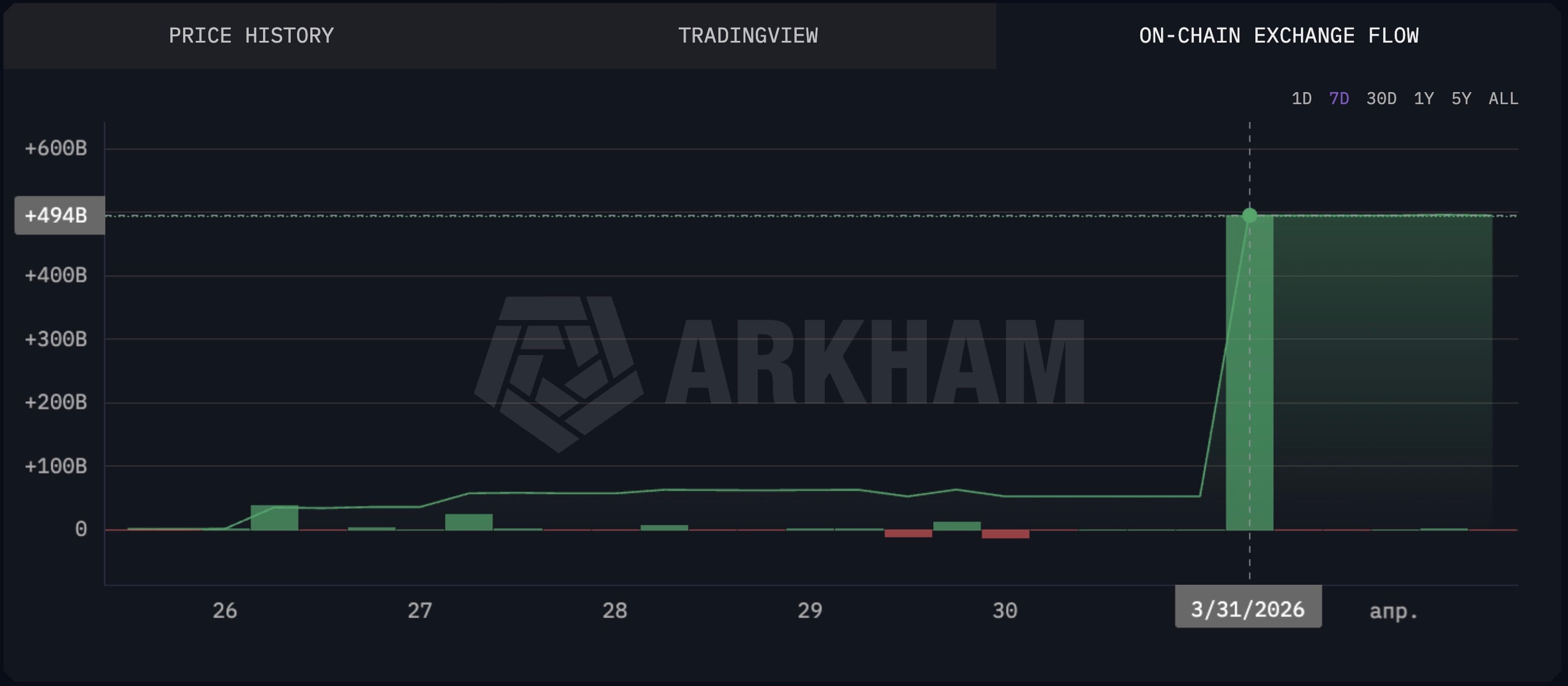 On-chain monitoring by Arkham Intelligence has recorded a large movement of Shiba Inu ($SHIB) tokens on centralized exchanges. Over the past 24 hours, the net inflow, according to "On-Chain Exchange Flow" for $SHIB, amounted to about 474.494 billion tokens, equivalent to nearly $3 million at current prices.