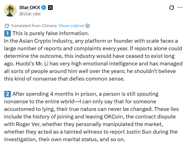 Xu called the claim “purely false information,” arguing that complaints against large exchanges are common and do not determine enforcement outcomes. He added that Li “shouldn’t believe this kind of nonsense that defies common sense.”