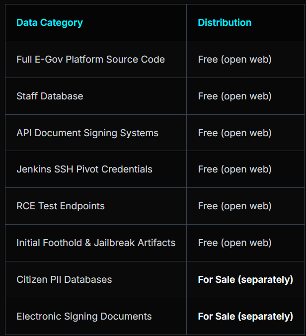 The threat actor claimed to have leaked the full source code of the e-government platform, sharing multiple supporting materials.