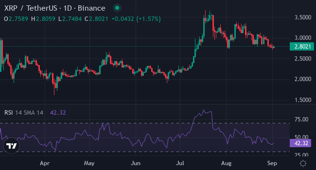 XRP удерживается вблизи отметки $2,8 в диапазоне $2,67–2,98. За последнюю неделю цена снизилась на 1,84%, тогда как за месяц показала рост на 1,15%, а за полгода прибавила 11,99%. Несмотря на недавнюю коррекцию, долгосрочный тренд остается позитивным.