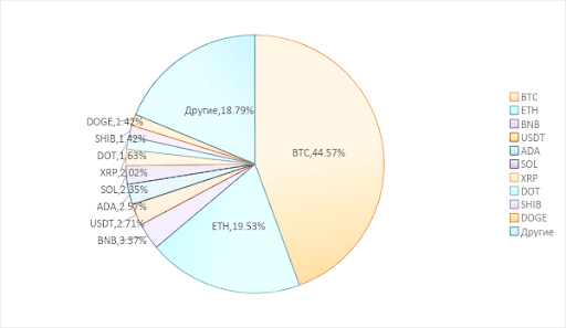 Рисунок 1.2: Доля рынка ТОП-10 криптовалют в общем объеме рынка криптовалют