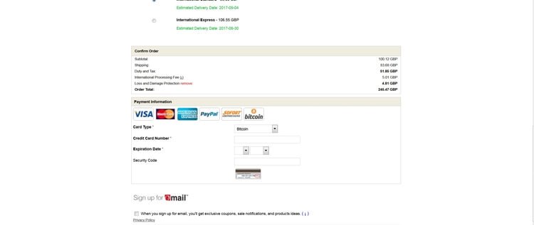 Некоторые сайты используют платежный процессор (например, Bitpay или Coinbase) для входящих платежей, поэтому клиент перенаправляется на другую страницу, чтобы получить итоговую сумму в биткоинах и адрес назначения.