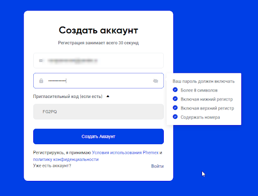 Что касается верификации вновь зарегистрированного аккаунта, то спешим вас успокоить – биржа Phemex не требует обязательного прохождения идентификации личности. А значит приступить к торговле криптовалютами можно сразу после того, как ваш аккаунт будет зарегистрирован.
