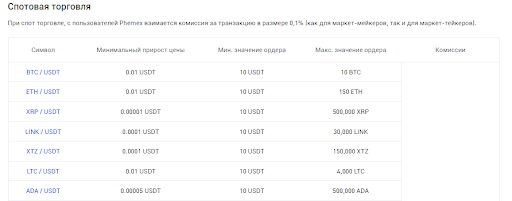 Комиссионная политика биржи Phemex выглядит следующим образом:
