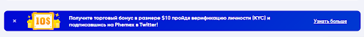 За прохождение верификации биржа предоставляет $10 долларов в качестве бонуса.