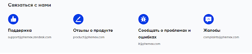 Если возникают какие-то сложности с пополнением или выводом средств, всегда можно обратиться в службу поддержки, которая работает 24/7. Для этого необходимо написать в чат или на почту support@phemex.zendesk.com.