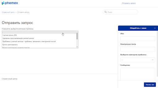 Биржа Phemex имеет мультиязычную поддержку, которая работает 24/7. Если у вас возникает какой-либо вопрос или предложение, то его можно оформить в соответствии с одной из категорий: