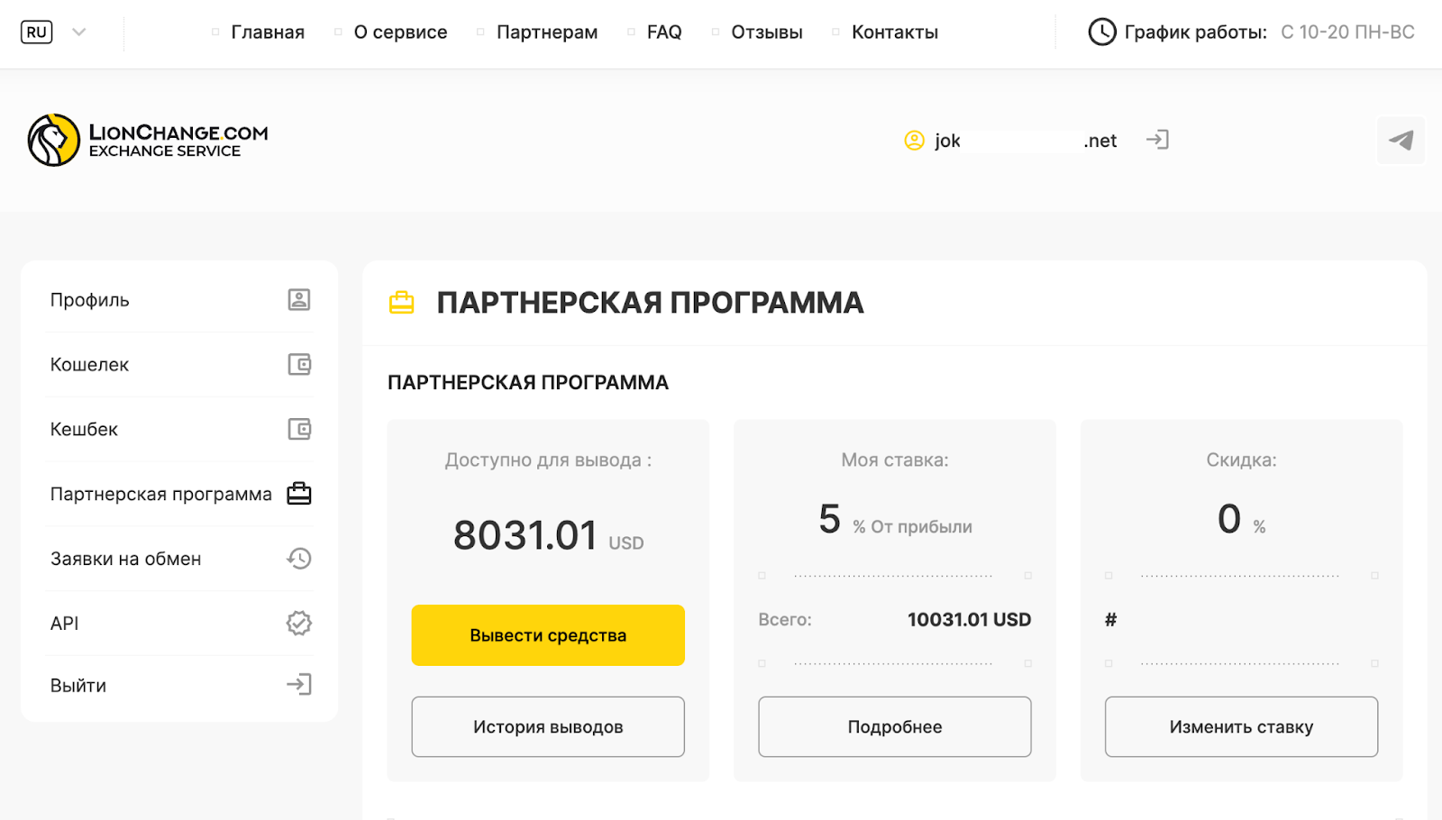 Для участия в партнерской программе сервиса LionChange необходимо зарегистрироваться и использовать специальную реферальную ссылку из личного кабинета. Участники получают процент от прибыли сервиса за каждого реферала, который зарегистрировался по их ссылке и совершил обменную операцию.