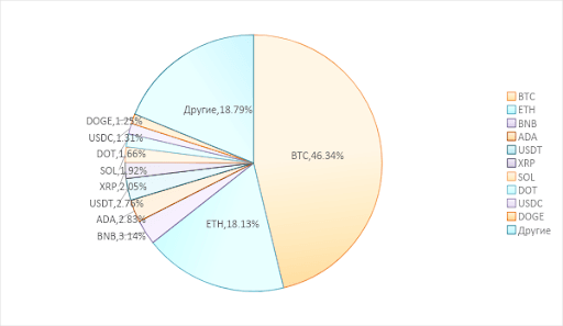 Рисунок 1.2: Доля рынка ТОП-10 криптовалют в общем объеме рынка криптовалют