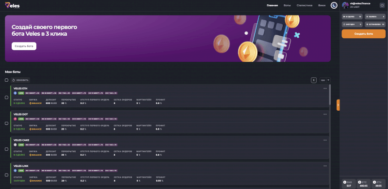 Работать с Veles будет несложно, даже если пользователь новичок в трейдинге. Понятный интерфейс и подробные инструкции делают создание и настройку бота простым и понятным.