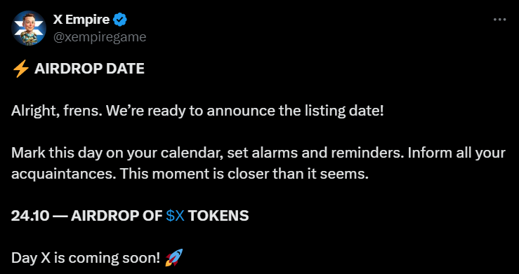 Ранее команда X Empire объявила о листинге токена X 24 октября.