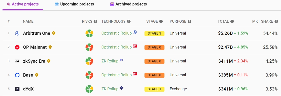 Согласно L2Beat, совокупная стоимость заблокированных в протоколе активов составляет $2,47 млрд. По этому показателю Optimism занимает второе место среди L2-сетей, более чем вдвое уступая Arbitrum.