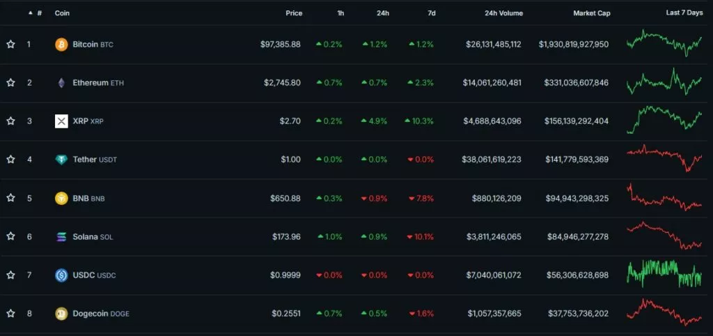 Для сравнения, цена биткоина за последние семь дней прибавила 1,2%, а Ethereum — 2,3%.