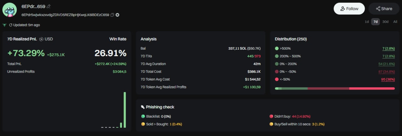 Неизвестный трейдер увеличил свой депозит в 191 раз. Он превратил $1513 в более $295 000 благодаря торговле мемкоином GORK в сети Solana. Об этом сообщает аналитическая компания Lookonchain.