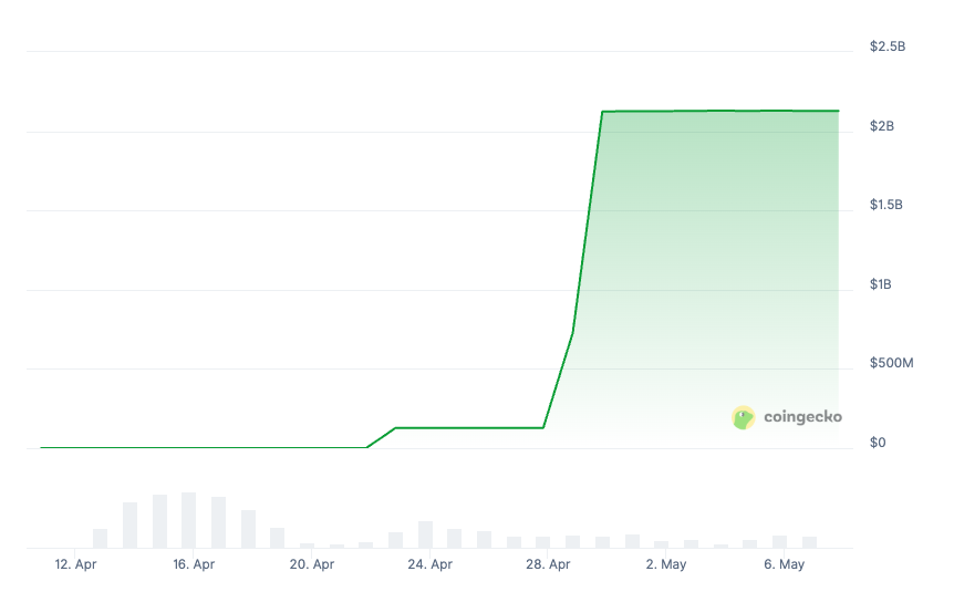 По данным CoinGecko, последний рыночный скачок USD1 был резким: за два дня в конце апреля он подскочил на 1540% — со 128 миллионов долларов до 2,1 миллиарда долларов.