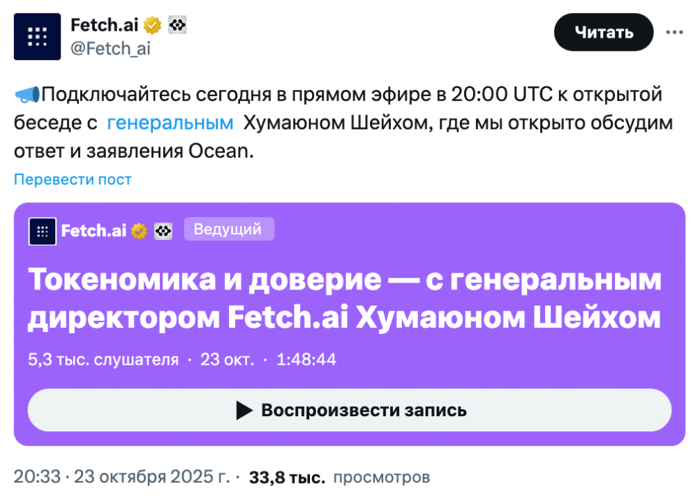 В четверг Fetch.ai заявила, что отзовет все неурегулированные юридические претензии к Ocean Protocol Foundation, если последний вернет 286 млн токенов Fetch.ai, которые, как утверждается, были проданы в ходе их объединения.