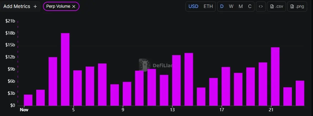 Объем торгов Hyperliquid в ноябре. Источник: DefiLlama