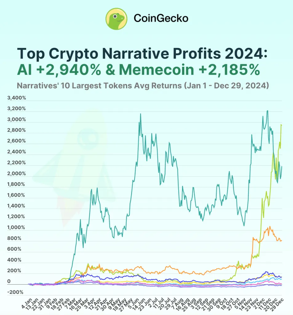 По данным CoinGecko, в 2024 году мем-коины стали самым доходным сектором и главным нарративом среди инвесторов.