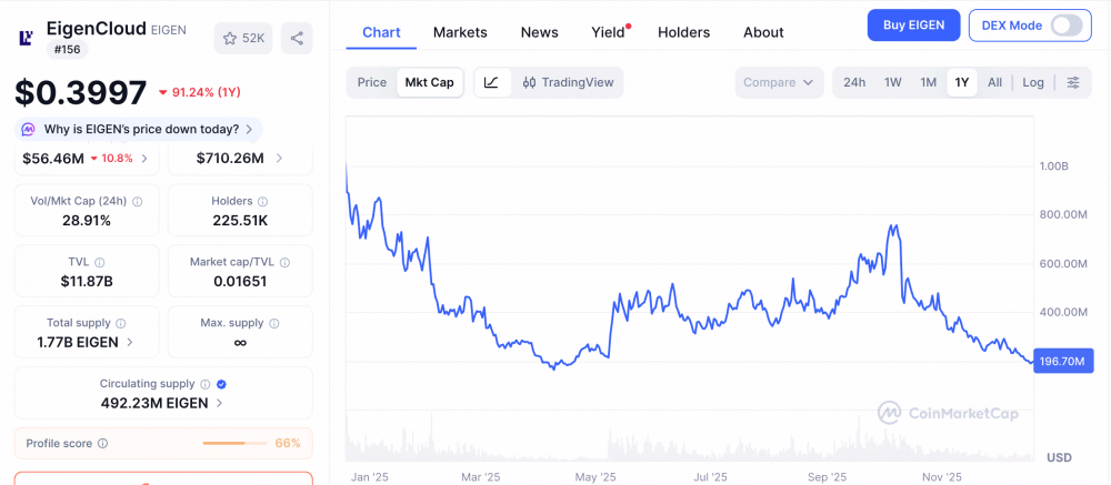 Рыночная капитализация EIGEN, 19 декабря 2025 года. Источник: CoinMarketCap.