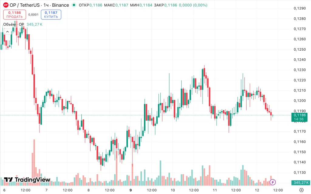 За последний месяц цена нативного токена OP снизилась на 36,7%. На момент написания монета торгуется около $0,11.