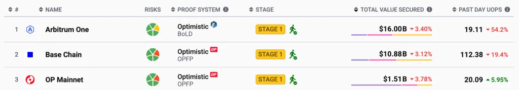 Optimism — одно из ключевых решений второго уровня для Ethereum. На момент написания его TVL превышает $1,5 млрд. Проект также достиг первой стадии децентрализации (Stage 1).