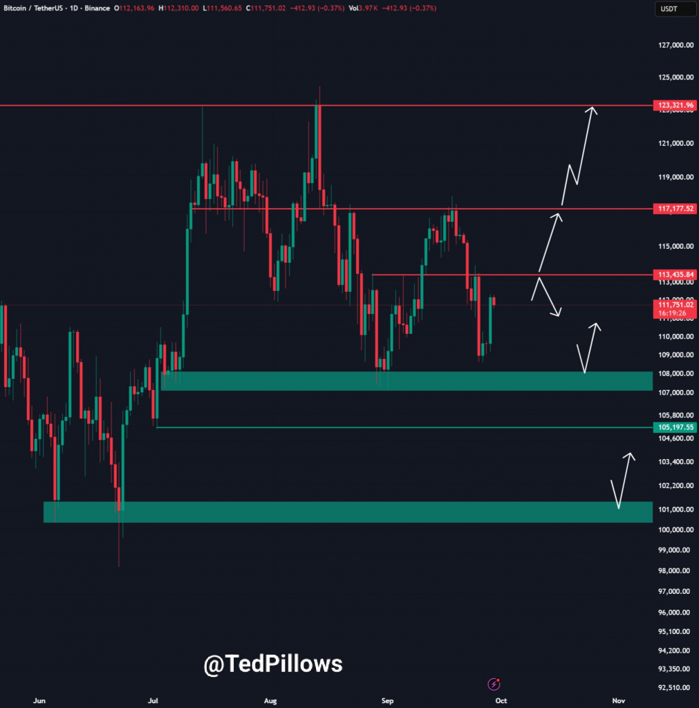 До конца месяца и квартала остается меньше 48 часов, так что волатильность неизбежна. По данным CoinGlass, на отметке $112 136 биткоин зафиксирует рост на 3,67% за сентябрь и около 4,81% за третий квартал.