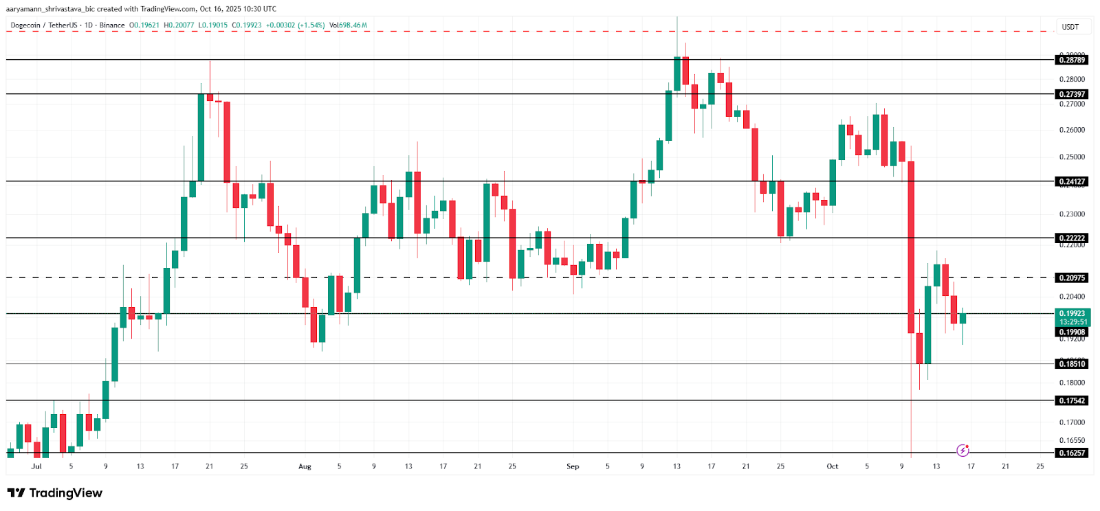 Прорыв ниже $0,62 завершит медвежий паттерн продолжения роста с целью $0,59 и $0,56. Рост выше $0,67 может восстановить краткосрочный импульс к $0,71, где 200-дневная EMA ограничивает потенциал роста.