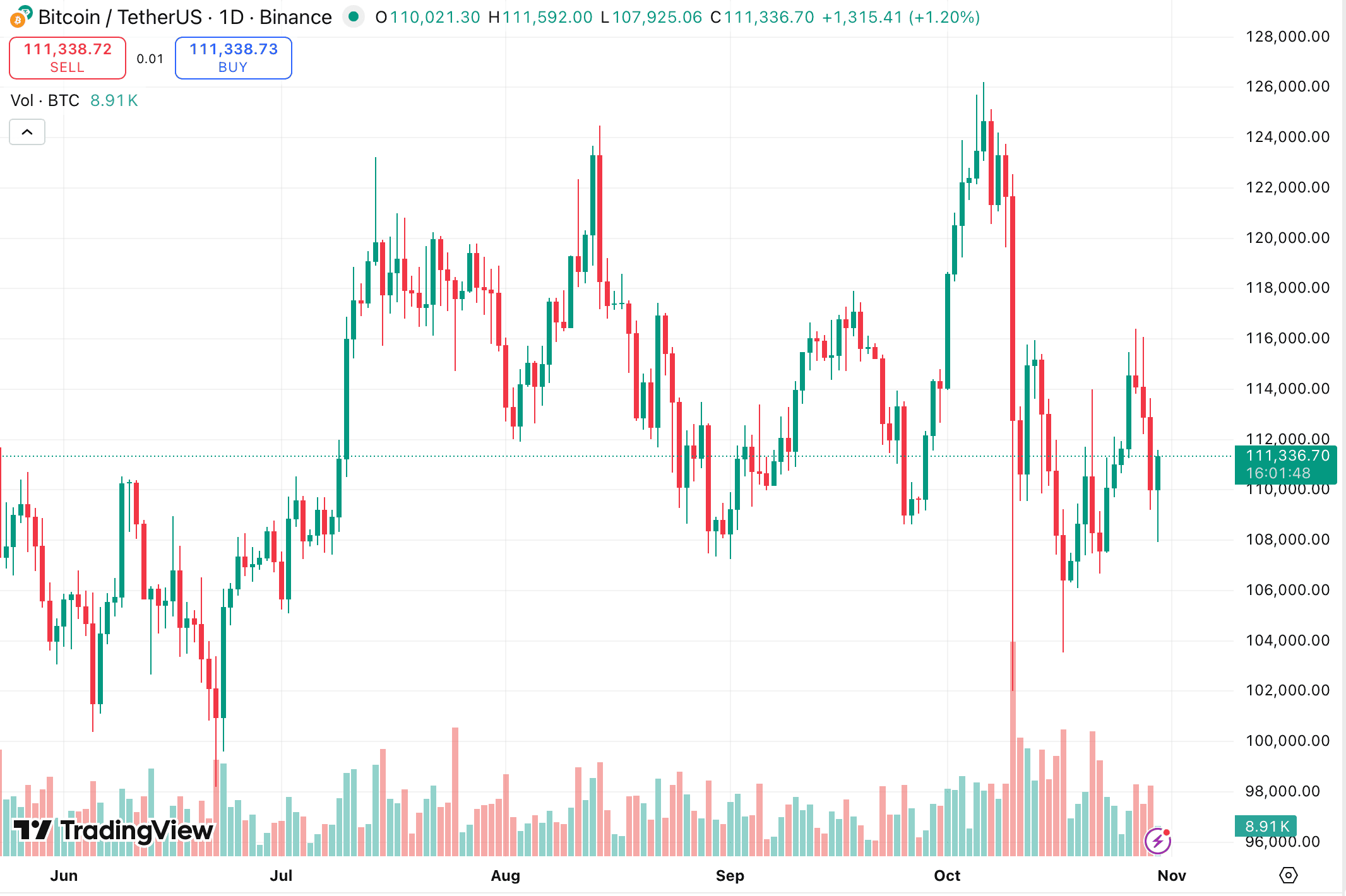 На момент подготовки материала биткоин торгуется на уровне $111 336, согласно TradingView.