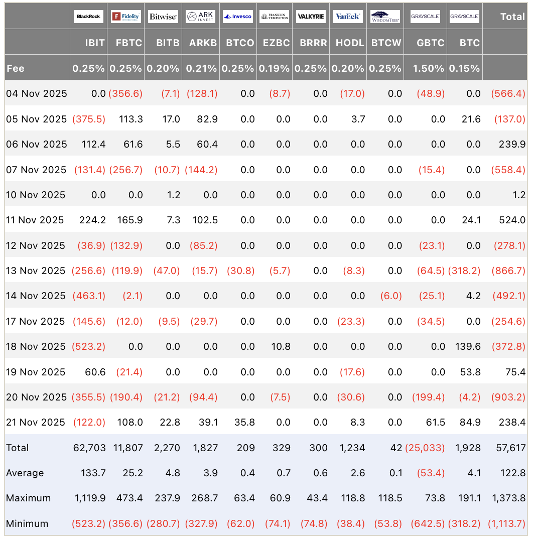 Неделя Дня благодарения (28 ноября) станет тестом для отскока биткоина. QCP Capital предупреждает, что исторически рост во время выходных дней часто оказывается ложным. Аналитики будут внимательно следить за тем, ослабевает ли давление продавцов с открытием американского рынка, и станут ли приток капитала 21 ноября в биткоин-ETF началом разворота тренда после рекордного оттока инвестиций.